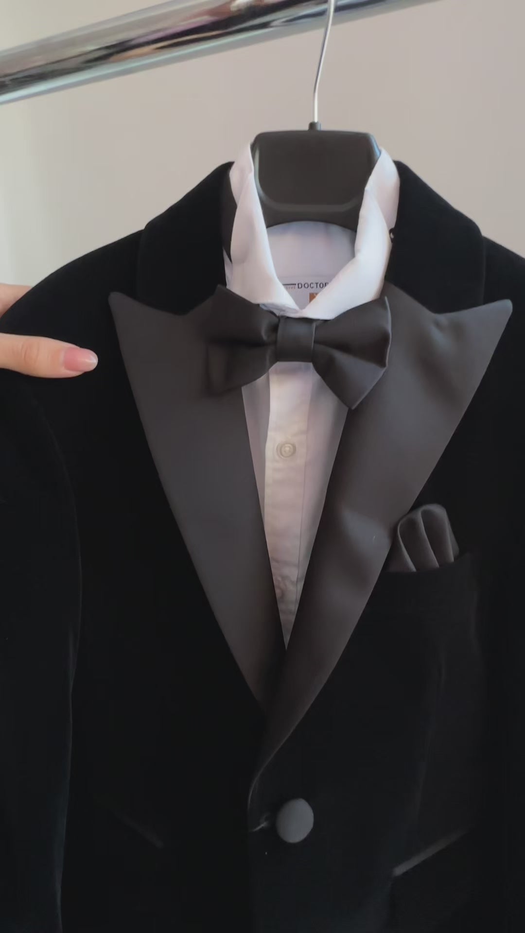 Blazer in velluto per ragazzi con rever a punta in raso – Giacca smoking slim fit per matrimoni e occasioni formali