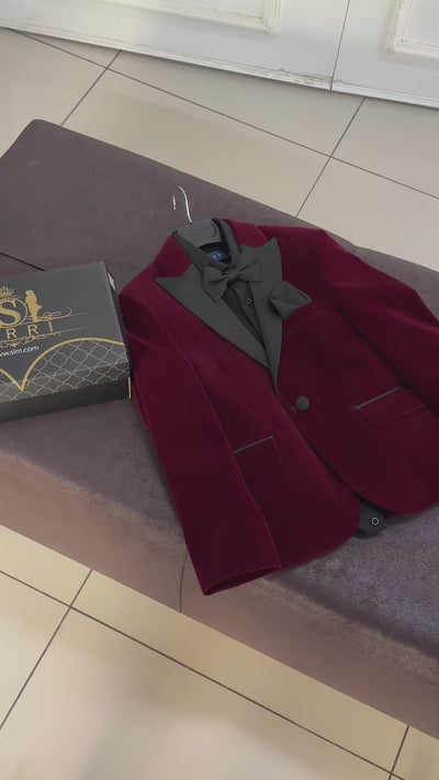 Blazer in velluto da ragazzo con rever in raso giacca da sera - Mayfair - Vino