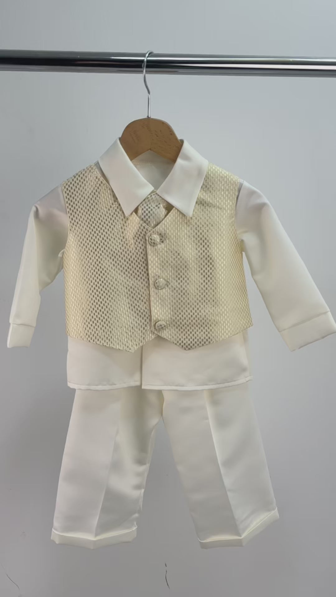 Baby Boys 4 Piece White Christening Suit With Gold Waistcoat - LEO
