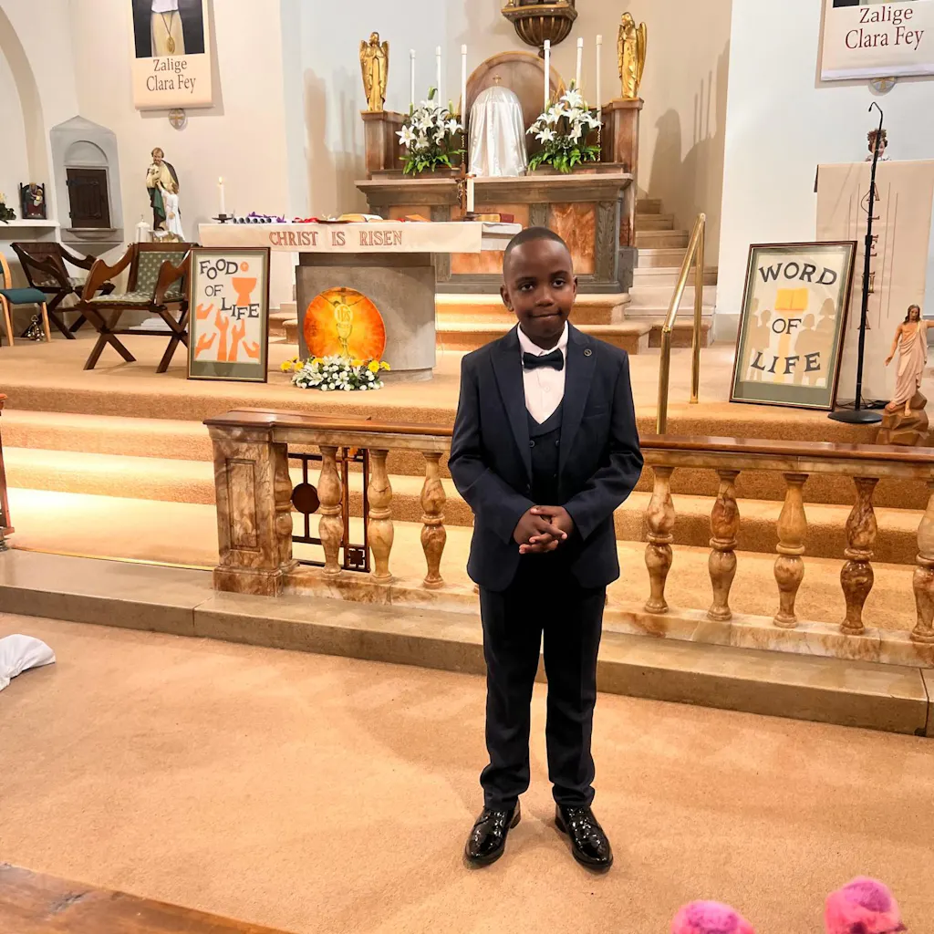 This five-piece set includes a jacket, double-breasted waistcoat, white cotton shirt, trousers, and pre-tied bow tie. Perfect for weddings, proms, communions, school events, or any special occasion where he deserves to shine. Whether he's making a grand entrance or posing for photos, watch him do so with confidence and style thanks to this suit. Complete the ensemble with dress shoes from our premium boys’ footwear collection.