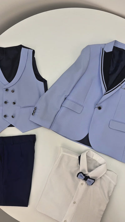 Boys’ 6-Piece Tuxedo Dinner Suit with Double Breasted Waistcoat - DAMATLIK - Blue