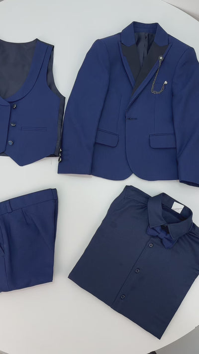 Boys’ 6-Piece Tuxedo Dinner Suit with Double Breasted Waistcoat - DAMATLIK - Navy