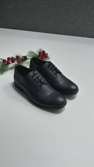 Boys Derby Mat Lace Up Formal Navy Blue Shoes - Atlanta - Navy Blue