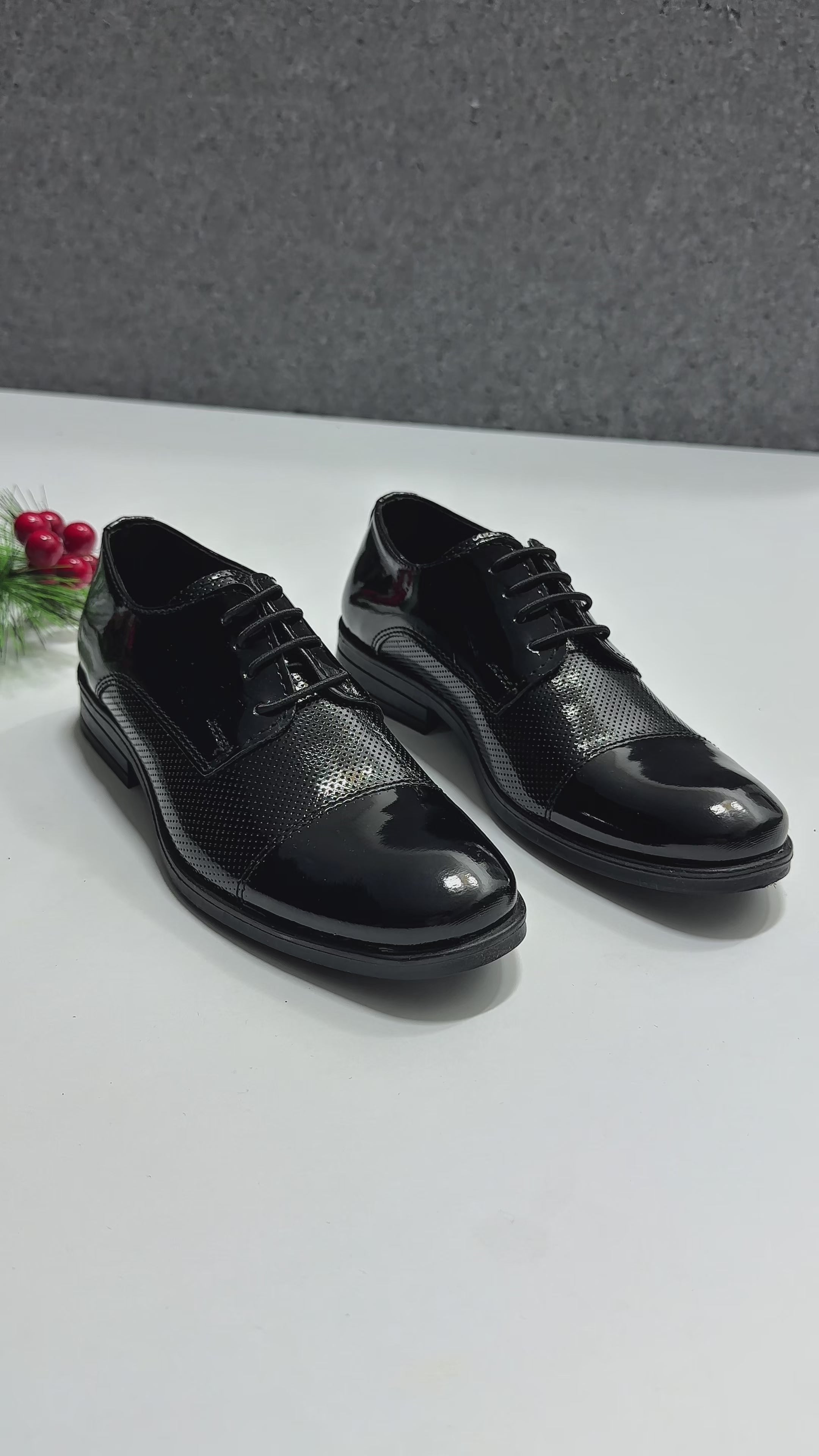 Boys Derby Patent Lace Up Dotted Dress Shoes