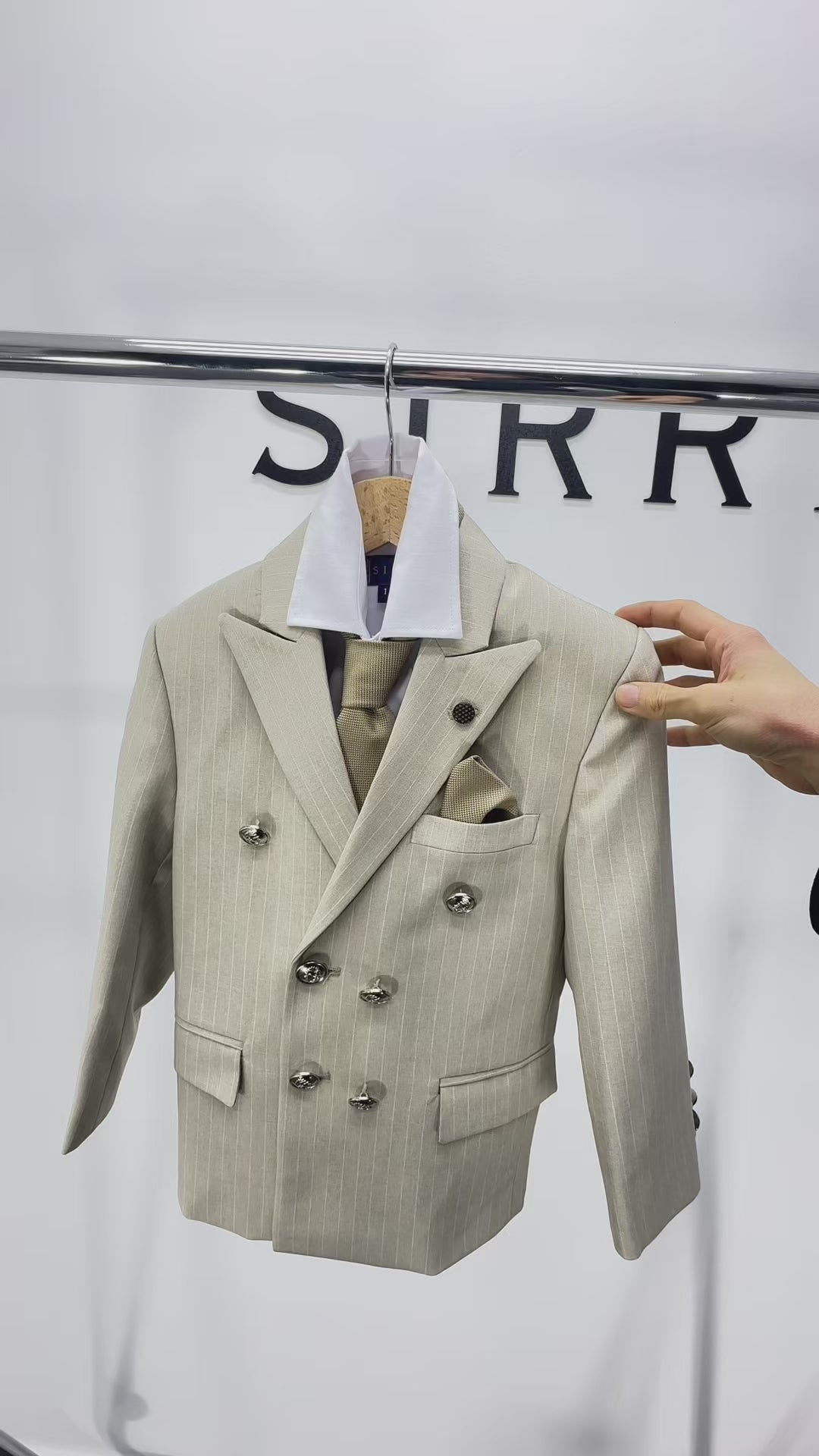Boys Double-Breasted Pinstripe Suit - 3-Piece & 6-Piece Set - Beige