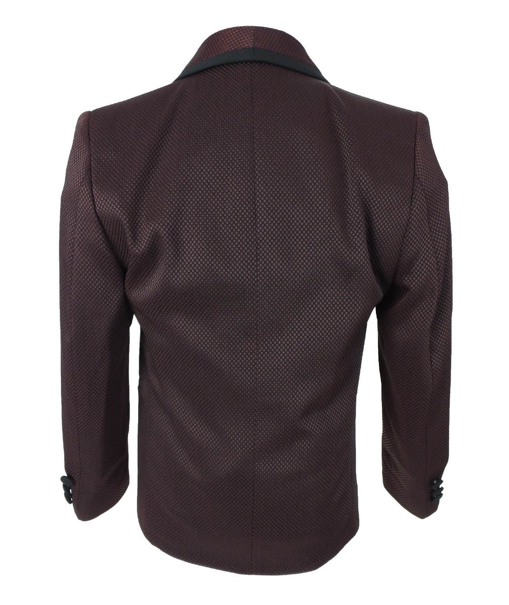 Boys Piping Birdseye Suit - BENIGNO - Burgundy - Black