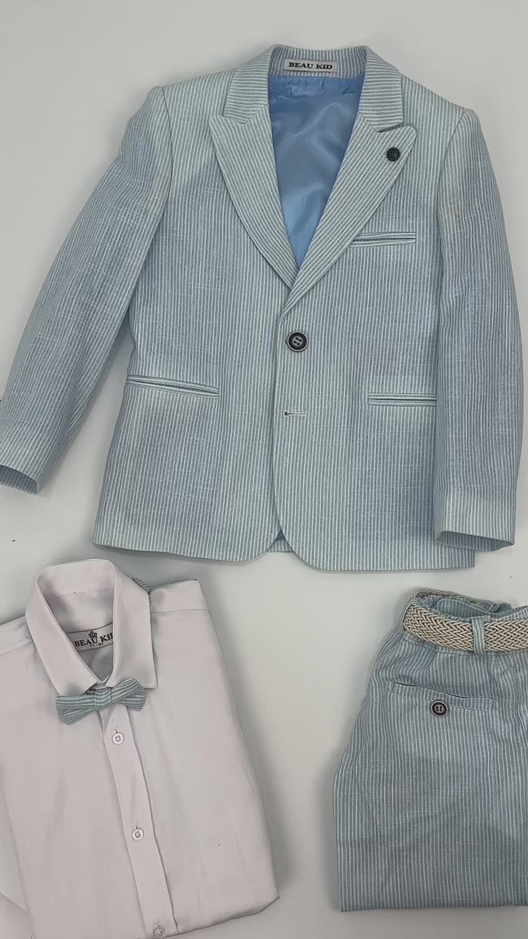 Boys Striped Cotton Seersucker Short Suit – ALEXANDER - Sky Blue
