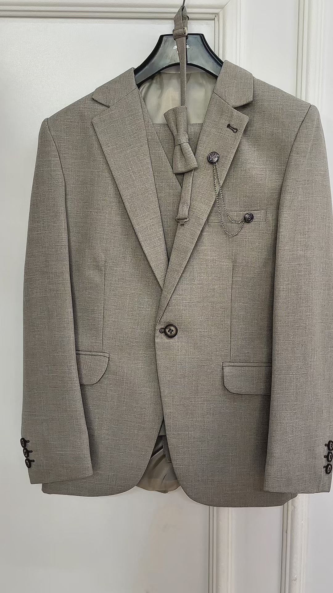 Boys Slim Fit Textured 8-Piece Formal Suit Set - Taupe Beige