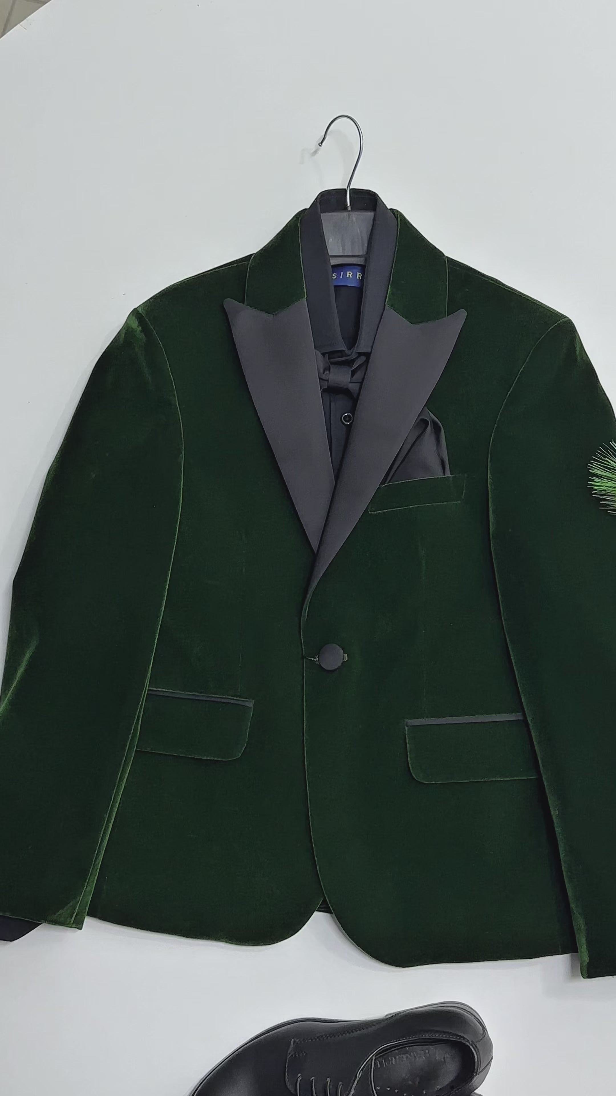 The Sirri velvet tuxedo-style blazer for boys is a statement piece that blends timeless elegance with modern sophistication. Expertly tailored in a slim-fit cut from premium materials, this velvet dinner jacket offers a luxurious texture and refined structure, making it ideal for special occasions and formal gatherings.