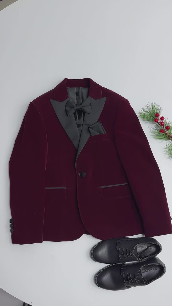 Boys Velvet Blazer with Satin Peak Lapel – Slim Fit Tuxedo Jacket for Weddings & Formal Occasions