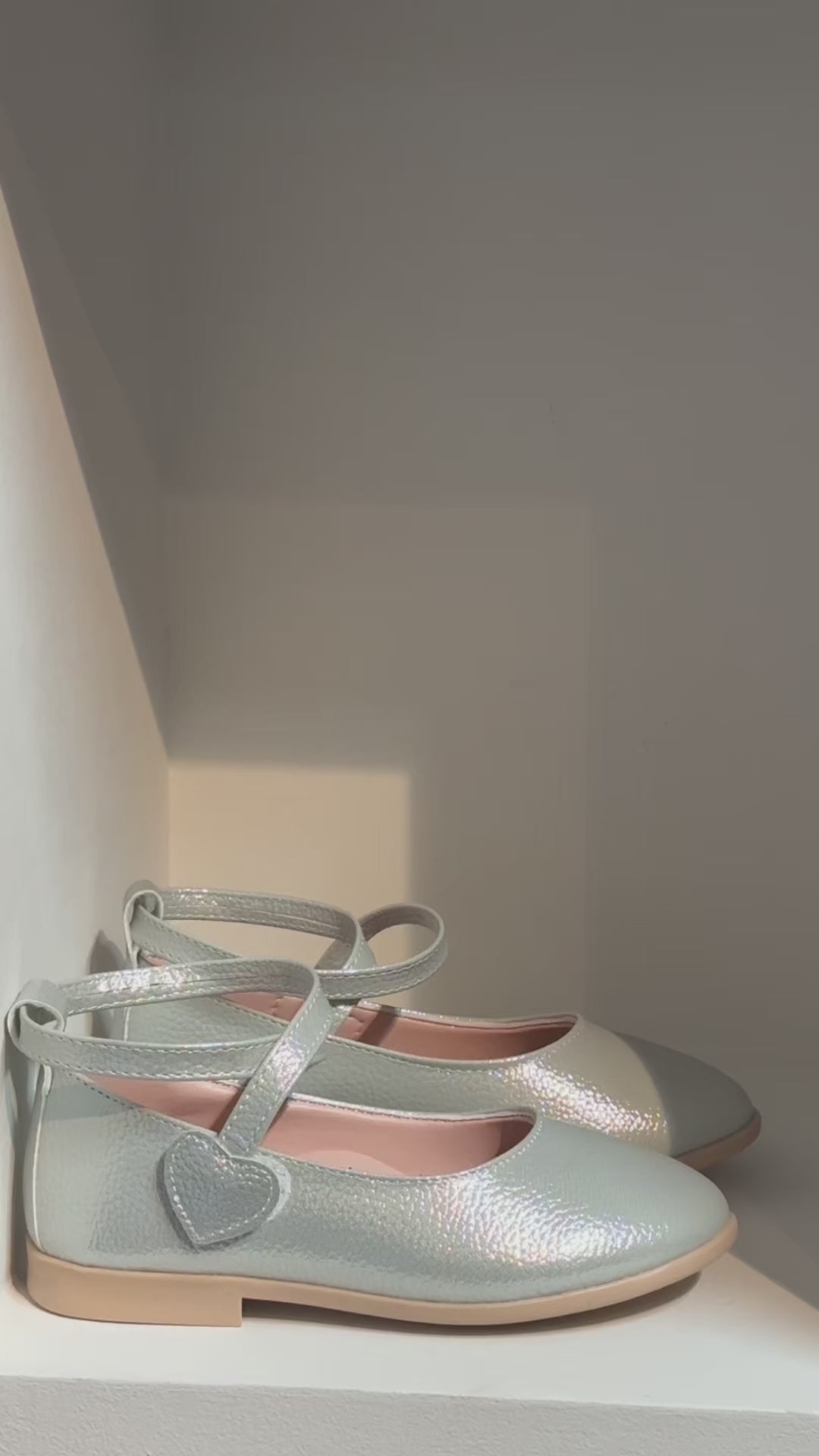 Step into sparkle with these charming Girls' Metallic Silver Mary Jane Flats. Designed for the little fashionista, these flats feature a delightful heart-shaped detail and a secure strap for all-day comfort. With a versatile silver finish, they're perfect for dressy occasions or adding a touch of glam to a casual outfit.