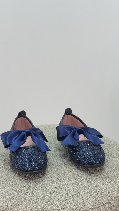 Girls Sequin Ballerina Flat Pumps - LOLA - Navy Blue